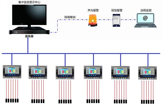 變壓器繞組及電纜接頭溫度監(jiān)測(cè)報(bào)警系統(tǒng)采用漢光專用熒光光纖測(cè)溫探頭進(jìn)行敷設(shè)。每個(gè)變壓器采用一套熒光光纖測(cè)溫主機(jī),HKFO-600YG系統(tǒng)接入后臺(tái)通過(guò)服務(wù)器進(jìn)行管理。當(dāng)發(fā)生溫度異常警報(bào)時(shí)可聯(lián)動(dòng)聲光、短信報(bào)警功能,報(bào)警信息將發(fā)送到運(yùn)維用戶手機(jī)上,也可通過(guò)電腦主機(jī)遠(yuǎn)程監(jiān)控查看現(xiàn)場(chǎng)狀態(tài)。